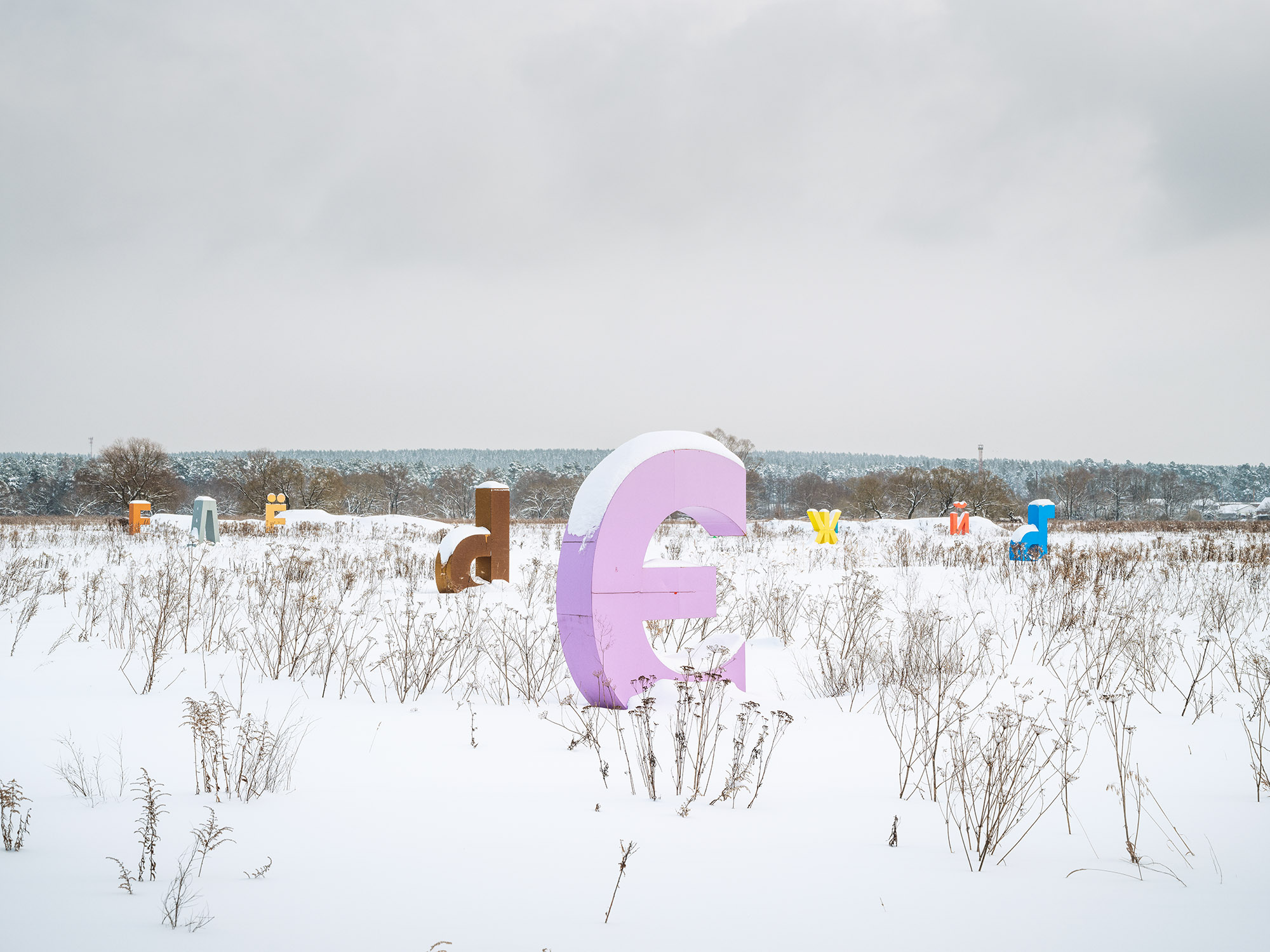 На фотографиях изображено находящееся в отдалении от населенных пунктов поле, раскроенное проселочной дорогой, и на нем среди напитанной солнцем звонкой травы и скромных луговых цветов или среди белесой однородности снежных сугробов стоят массивные буквы. Выполненные из металла и окрашенные в яркие — красный и розовый, оранжевый, синий, зеленый и их оттенки — цвета, они образуют сложную пространственную композицию, складывающуюся в кириллический алфавит. Присутствующий на фотографиях образ насильственного вторжения текста в пейзаж зацикливается на вопросе «Что здесь происходит?», от ответа на который Гронский настойчиво уклоняется. «Я не могу никому объяснять, что происходит, потому что я сам не понимаю, что происходит. — рассказывает автор. — И моя честная позиция — это просто ходить и наблюдать» [1].